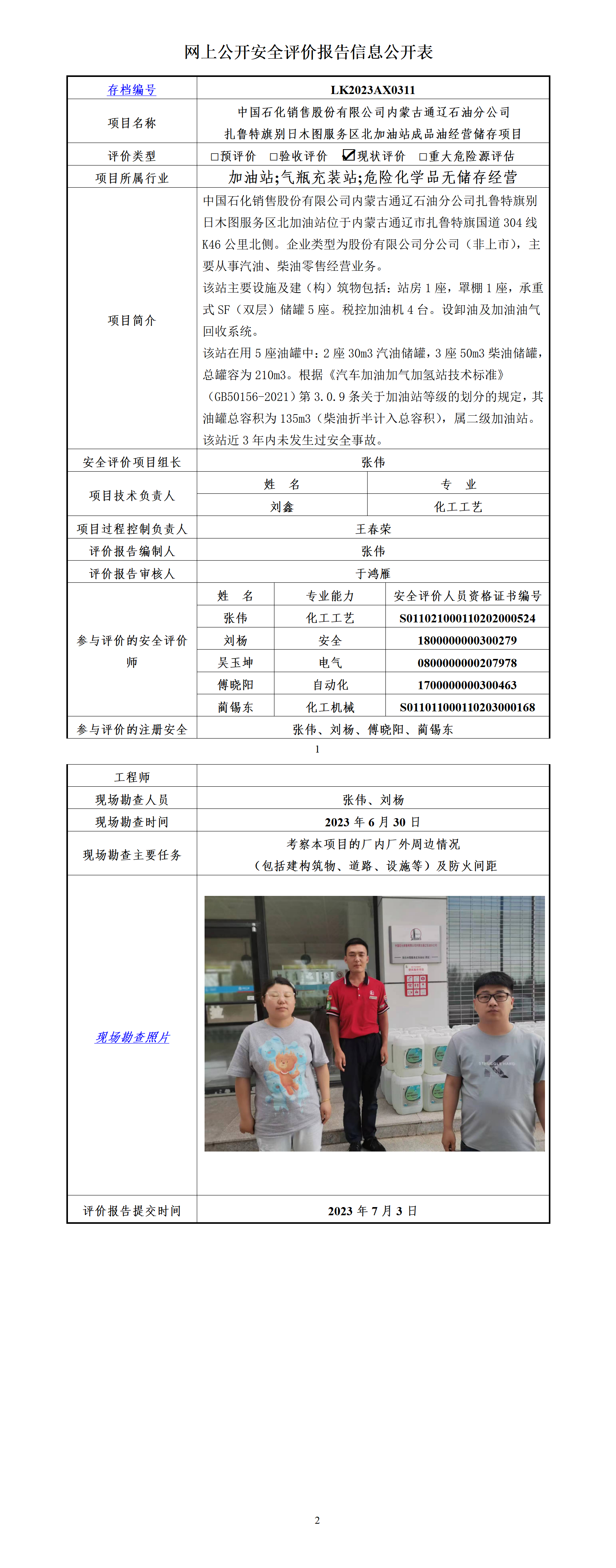 中国石化销售股份有限公司 内蒙古通辽石油分公司 扎鲁特旗别日木图服务区北加油站 成品油经营储存项目