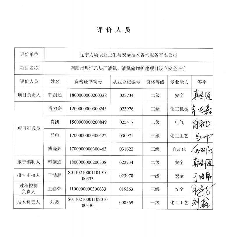 辽宁力康职业卫生与安全技术咨询服务有限公司在接受其委托并与其签定该项目的技术服务合同后,随即成立评价项目组,全面开展该项目安全评价工作,并按照《危险化学品建设项目安全评价细则(试行)》(安监总危化[2007]255号)的要求编制完成《朝阳市煜汇乙炔厂液氩、液氮储罐扩建项目设立安全评价报告》。